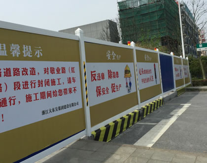 工程圍擋為在圍擋安裝的時候應當做好安裝的前期工作,比如需要將一些綠化的樹木移栽到其他地方,以至于安裝市政施工圍擋后穩固,不容易被倒下和避免被大風吹倒,安裝市政施工圍擋時必須以不影響行人安全和通行的前提下進行。當施工圍擋安裝完畢后需要將施工工地和外界徹底隔離,以至于不被不相干人等進入施工地域,以免進入施工地區發生危險。安裝好施工圍擋后請安排專人在安裝水工圍擋的外部進行巡邏維持因安裝圍擋引起道路不便的次序。最后強調一點在市政施工圍擋附近禁止擺放雜物,泥土等不想關的東西,保持市政施工圍擋的整潔美觀,而不影響市容市貌。