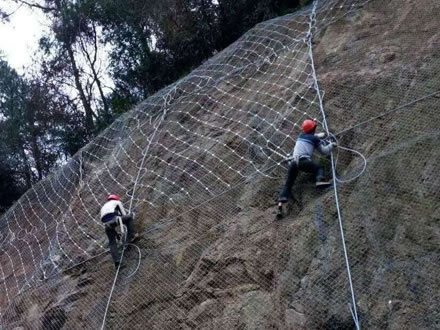 邊坡防護網分類有主動防護與被動防護。邊坡防護網在高速公路鐵路滑坡中的使用,邊坡防護網又叫護坡網、鈦克網等邊坡防護網有主動防護與被動防護,主動防護系統是以鋼絲繩網為主的各類柔性網覆蓋包裹在所需防護斜坡或巖石上,以限制坡面巖石土體的風化剝落或破壞以及為巖崩塌(加固作用),或將落石控制于一定范圍內運動(圍護作用)。被動防護是由鋼絲繩網、環形網、(需攔截小塊落石時附加一層鐵絲格柵)、固定系統(錨桿、拉錨繩