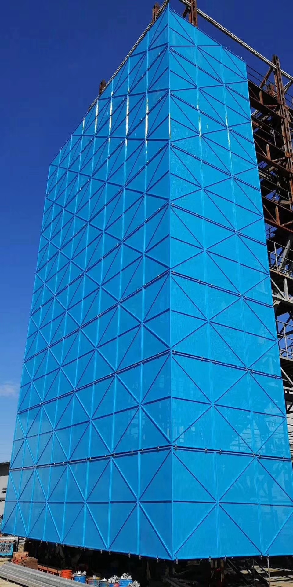 落地架所選用的爬架網片簡單的解釋就是用鋼板沖孔制作出來的金屬板防護網,這種落地架爬架網片爬架網片的優點非常多,比較以前的塑料密目網來說此爬架網片的耐用性更持久,安全性能更高,防火、防風、防塵、隔音效果都非常棒,所以很受大家的喜愛。