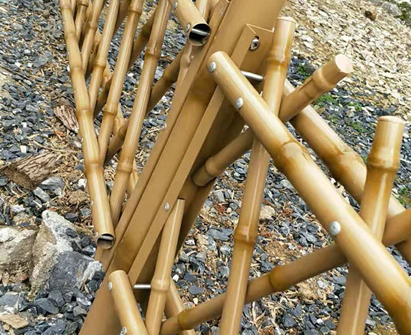 仿竹產(chǎn)品的表面處理均用抗日光型的戶外用特殊涂料,使用高科技無氣噴涂技術,涂層厚度均勻,易清潔,不易褪色,不需任何維護。