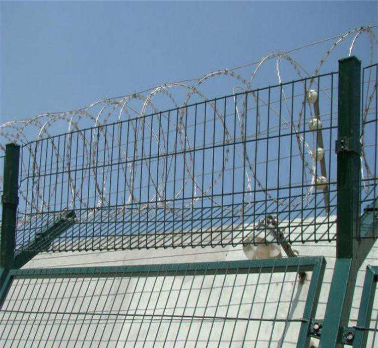 監獄護欄網現被*應用在監獄,軍事基地等高*場所。注:如果在監獄護欄網頂部加裝刀片刺絲、刀片刺繩后又很好的增強了*防護性能。采用電鍍、熱鍍、噴塑、浸塑等 形式,具有很好的抗老化、抗曬、耐候等特點。其產品造型美觀、花色多樣,既起到圍欄作用,又起到美化作用。由于具有*性高、防攀爬能力好,網片連接方式采用SBS緊扣件,有效防止人為的破壞性拆卸,橫向四道折彎加強筋,使網面強度大大增加。